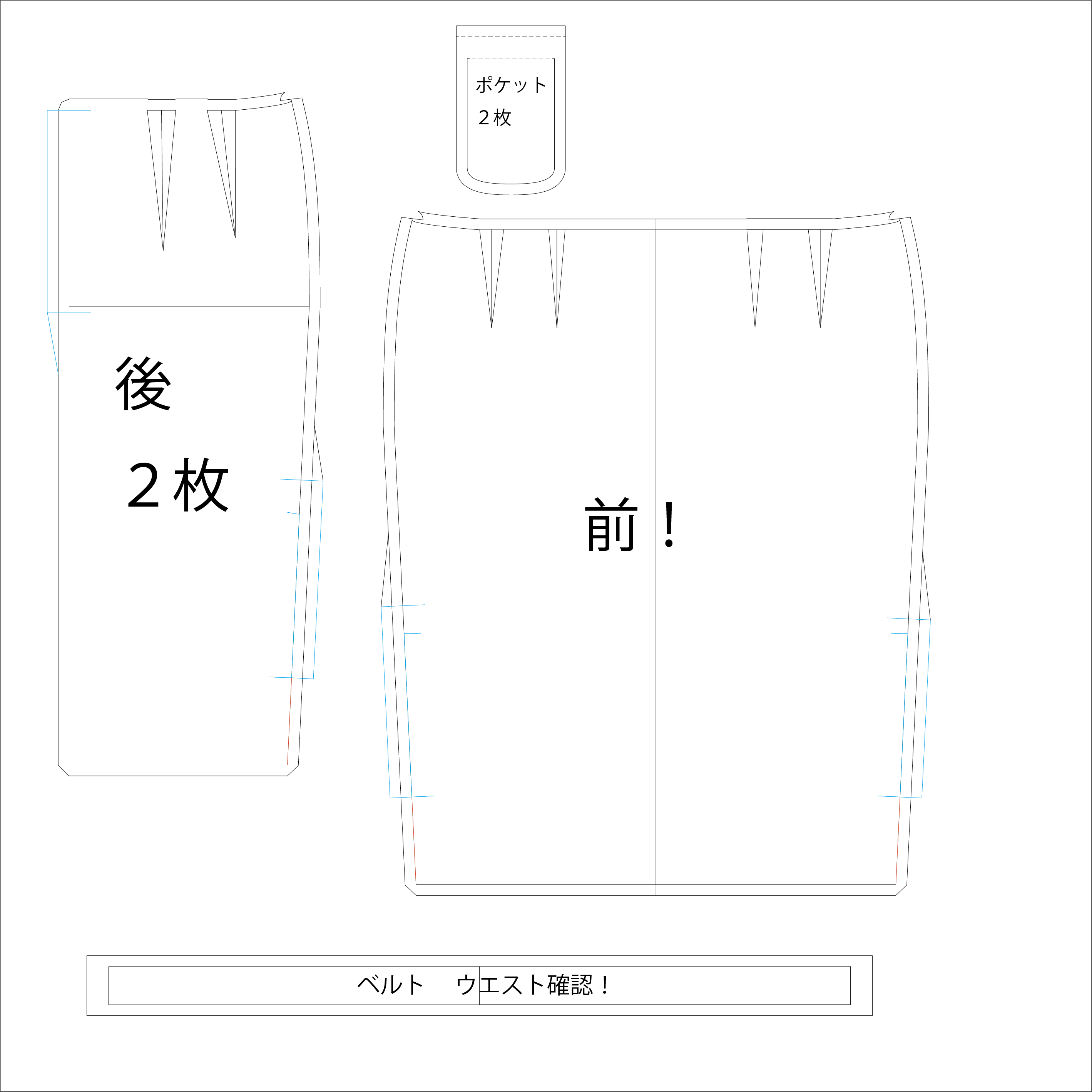 咲夜さん衣装を製作するぞ!(その2) 1 本日の進捗前回は咲夜さんの衣装をトップスの仮縫いまで進めました。今回は、トップスを製作開始……ではなく、スカートに手を付けました。だってブラウスの袖のカタチが決まらないんだもん(`;ω;´)とりあえず型紙はこんな感じ↓です。 ウエスト68cmのヒップ90cm(9号サイズのつもり)。スカート丈は60cmで、裾を型紙上で4cm、都合8cm絞っています。これだと歩けなくなってしまうので、裾に8cmぐらいのスリットを入れました。裏地をキチンとつけようと思うとスリットの製図は相当かなり面倒っぽいです。手元の本を見ながら考えましたが、まぁ、いらんやろ、ということで、気にせずサクッと引いてしまいました。あとは、ヒップの後ろにウエストで止めるためのファスナーを付けるようにしています。両サイドにも、スリットを伸ばすためのファスナーを忘れずつけるようにしています。キックの得意なレイヤーさんに着ていただかないと、無用の長物ですね\(^o^)/で、コレを印刷して切り出して(ここは写真忘れた)、裁断するとこんな感じです↓ パーツ数が少ないとあっという間ですね。2 今後の見通しとりあえず、切り出したパーツを端処理して縫い合わせて、一気にファスナー3本つけて形にしてしまいましょう。どうみても前身頃にアクセントが足りないデザインなので、どうするかは考え中です。エプロンつければ目立たないかなぁ……?